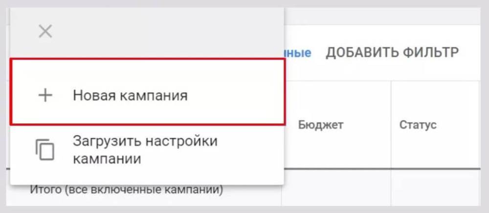 Кликните на «+» и выберите раздел «Новая кампания».