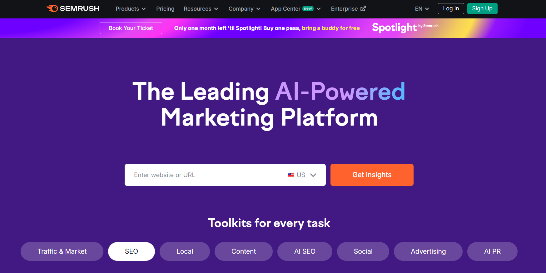 - имеет разные инструменты для интернет-маркетинга (SEO-чекер, трекер соцсетей, автопостинг, мониторинг бренда);