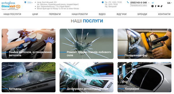 Для этого специалисты обновили заголовки и описания объявлений. Они учитывали смысл ключевых слов, регион поиска и запрос потенциального клиента. Например, для запроса «ремонт лобового стекла Киев» в заголовке обязательно указывались конкретная услуга и город.