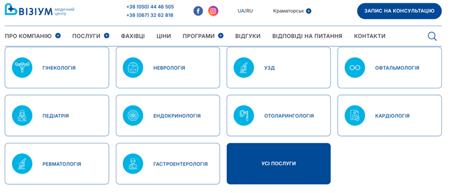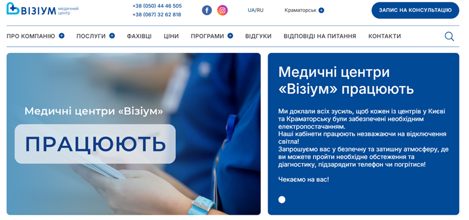 В медицинской сети «Визиум», филиалы которой работают в Киеве и Краматорске, пациентам предоставляют широкий выбор услуг. В центрах особое внимание уделяется соблюдению современных стандартов на всех этапах диагностики и лечения, а также формированию культуры бережного отношения к здоровью.