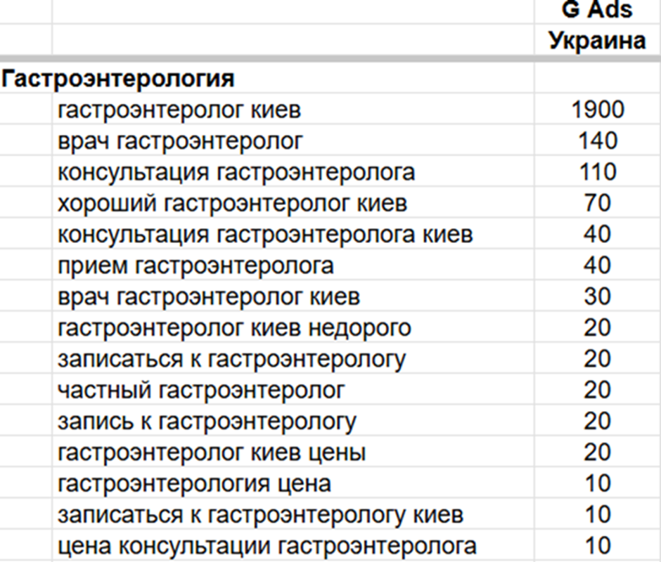 Параллельно шла работа над расширением семантического ядра. Специалисты с помощью современных онлайн-инструментов собрали список медицинских запросов, среди которых были общие, к примеру «офтальмолог Киев», а также узкие, такие как «эндоскопия желудка цена». Для каждого ключа оценили частотность, уровень конкуренции и потенциальную отдачу. После согласования финального списка запросов с клиентом мы распределили их по посадочным страницам и расставили приоритеты.