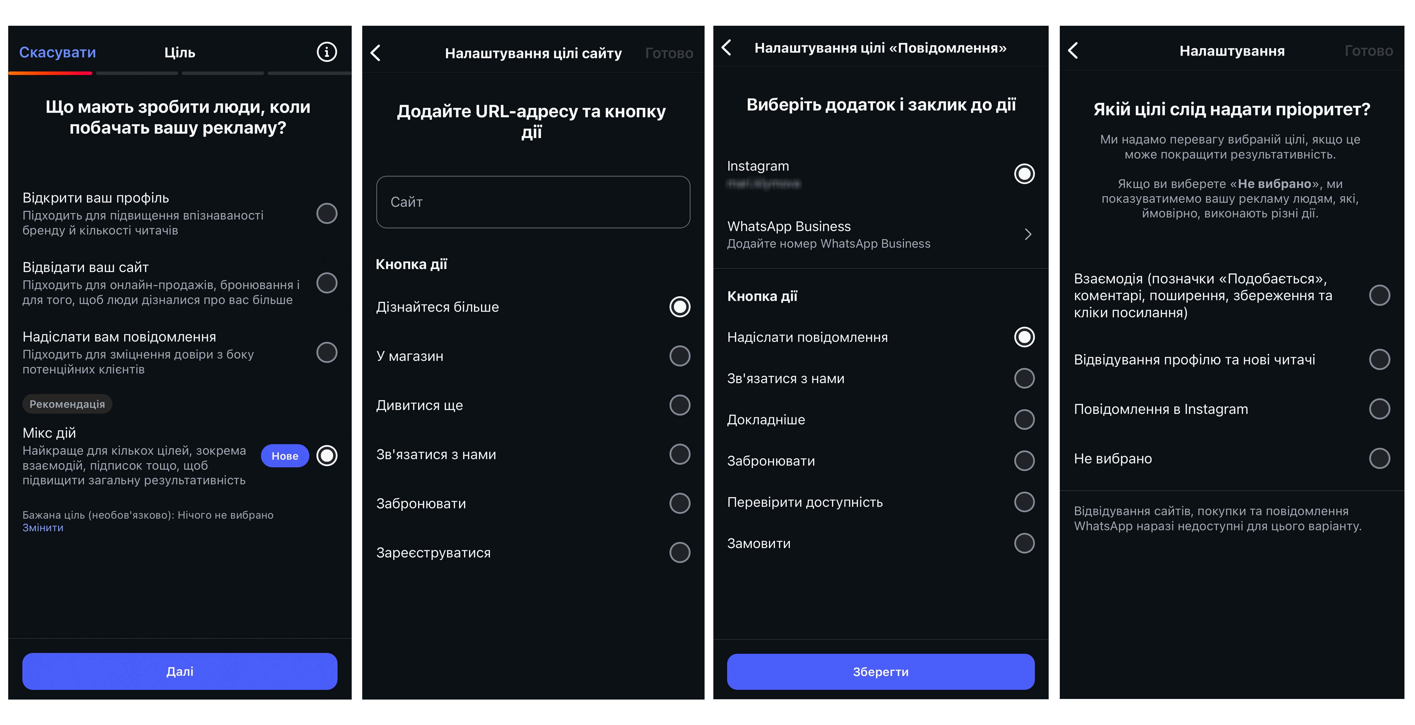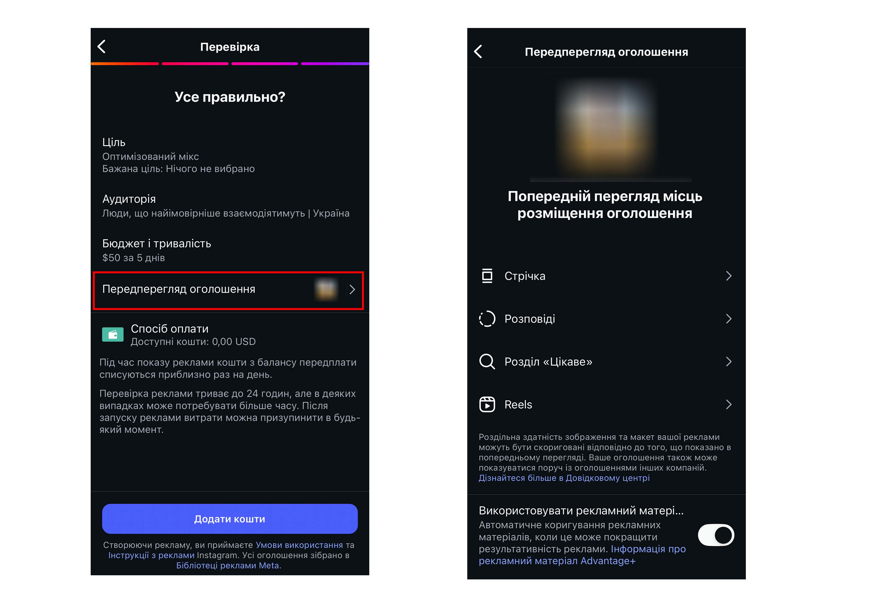 Кроме того, определитесь, где будут отображаться ваши объявления — в ленте, Stories или оба варианта.