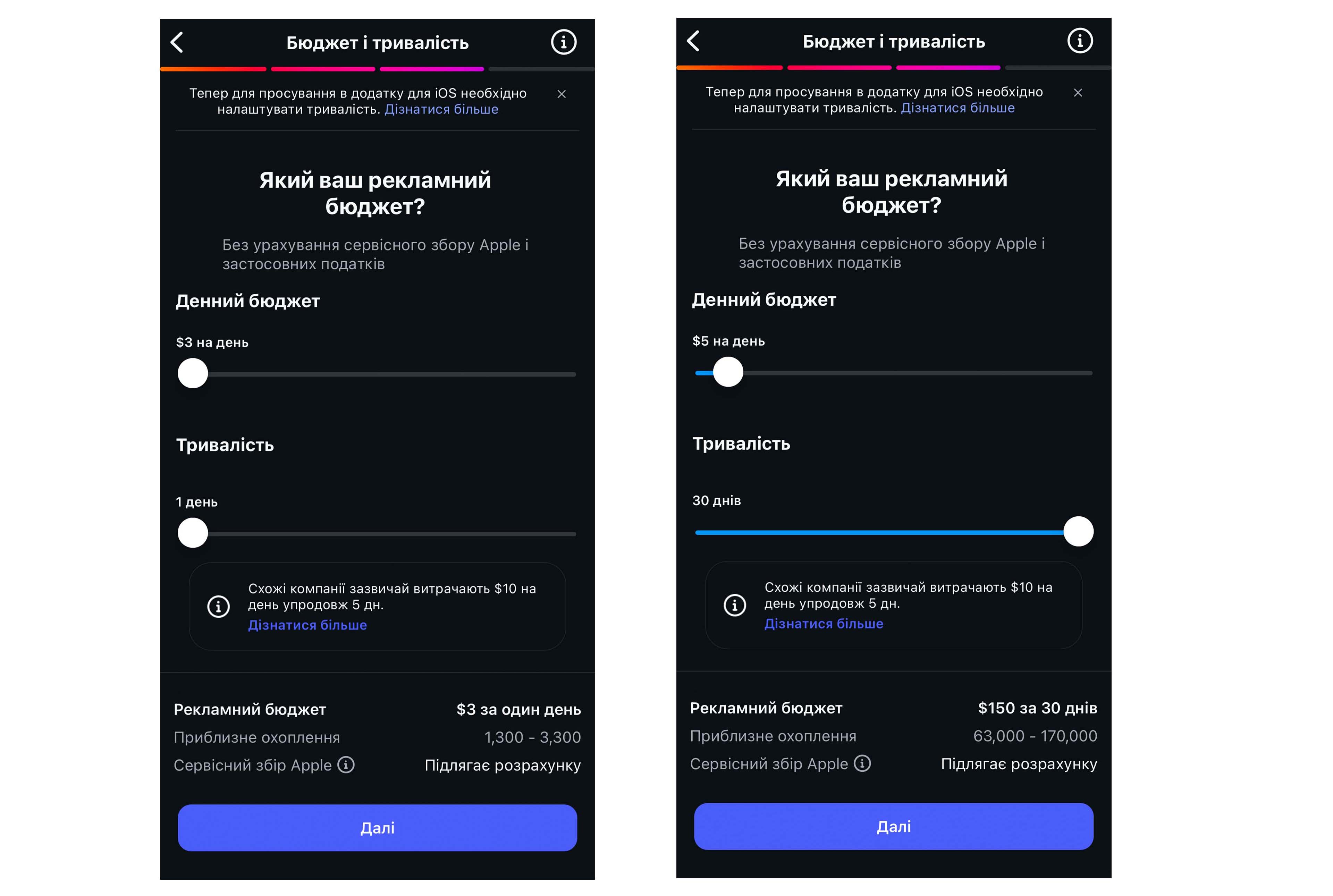 - Дневной — сумма, которую платформа будет тратить в течение одного дня.