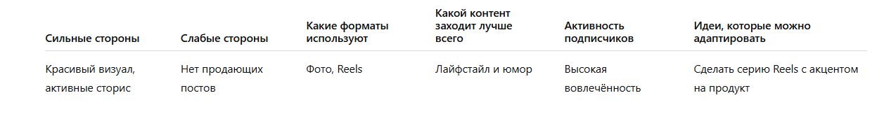 Следующий важный этап — это анализ конкурентов. Вам нужно определить, какие форматы контента они применяют, какие публикации получают наибольшую вовлеченность, какие рекламные кампании используются. Конечно, полностью копировать чужую стратегию продвижения не стоит. Ваша задача — изучить слабые и сильные стороны, чтобы избежать допущенных другими ошибок и разработать более эффективный план продвижения.