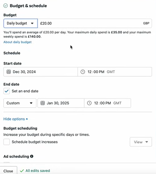 - Далее вы можете настраивать показ, как мы описывали выше. Используйте функции Advantage Plus для автоматизации и оптимизации различных аспектов ваших рекламных кампаний.