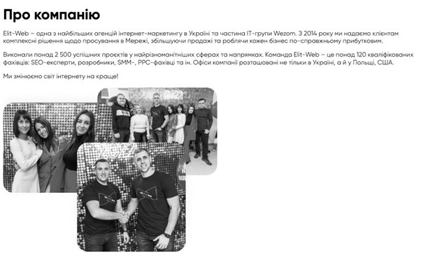 - Краткая история. Для YMYL-контента это особенно значимо: пользователи видят реальный путь компании. И даже если она молодая, можно рассказать, как возникла идея, какие трудности удалось преодолеть и каких успехов уже достигли. Таким образом вы сможете продемонстрировать «человеческое лицо» бренда, что положительно влияет на доверие.
