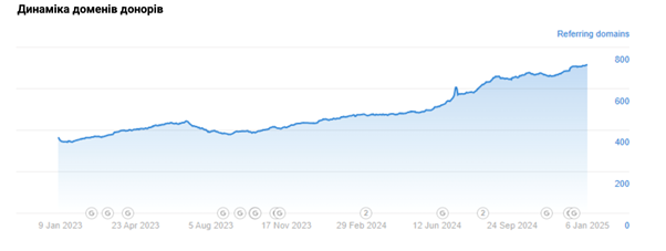 Уверенно развивается ссылочный профиль. Количество авторитетных доменов-доноров стало более 700.