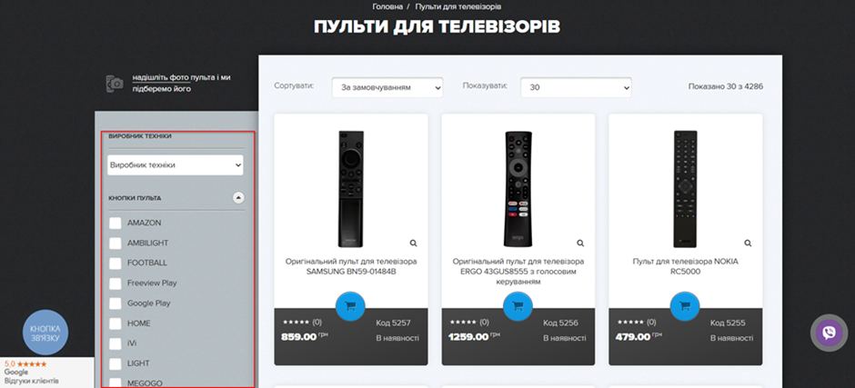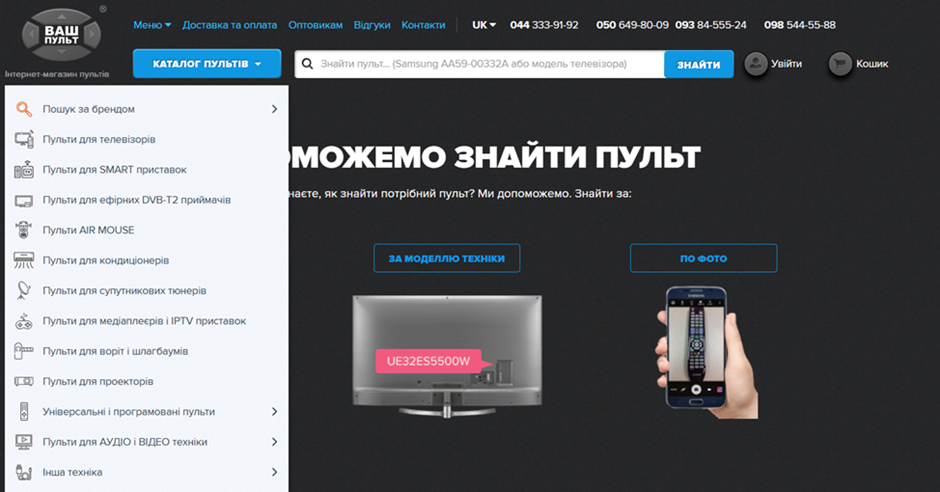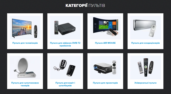 Сегодня каталог насчитывает свыше 4 000 моделей, среди которых особым спросом пользуются пульты для телевизоров. Помимо них, клиенты могут выбрать решения для следующей техники: