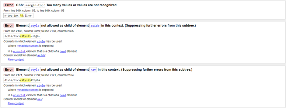 Также в коде сайта были найдены ошибки валидации. Это не соответствовало общеустановленным стандартам и негативно влияло на работу сайта и отображение отдельных элементов.