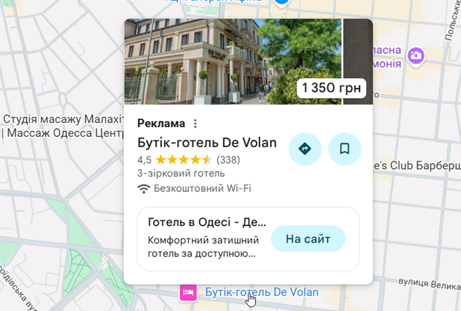Для користувача реклама у Гугл Картах відображається декількома способами: