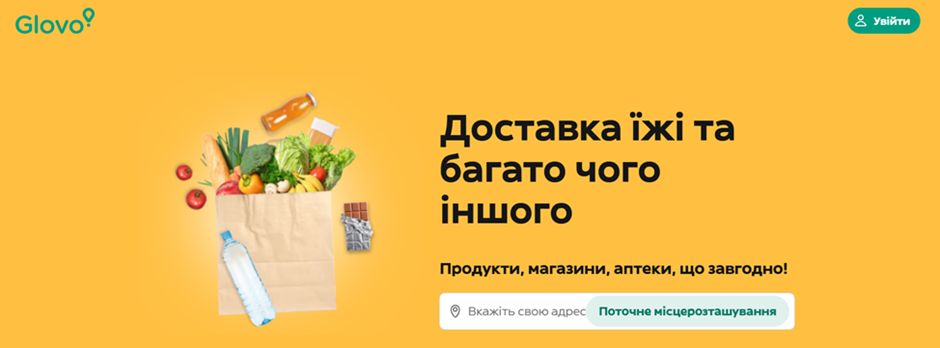- Маркетплейси доставки та їжі. Ці платформи об'єднують ресторани, кафе, магазини та служби доставки. Яскравим прикладом в Україні став Glovo.