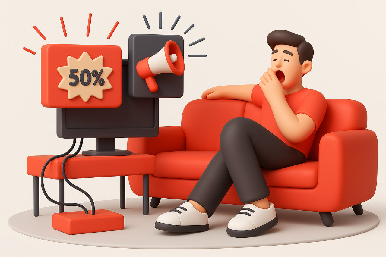 Також втому викликають нерелевантні пропозиції. Показувати зимове взуття у травні або рекламувати дитячі товари людині без дітей — прямий шлях до марнування грошей. Нерелевантні пропозиції справляють враження, що бренд зовсім не розуміє свою ЦА, і викликають роздратування, а не бажання щось придбати.