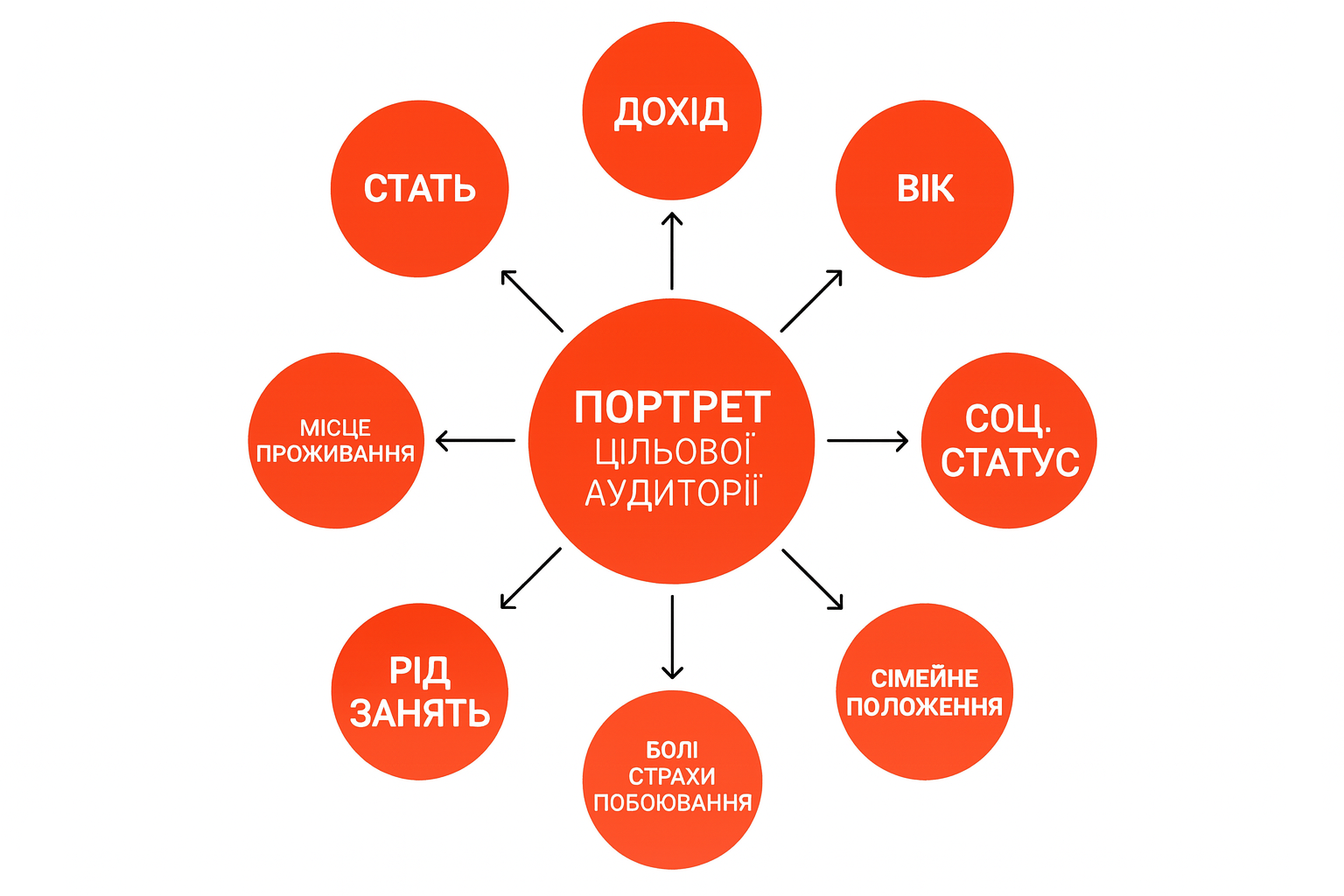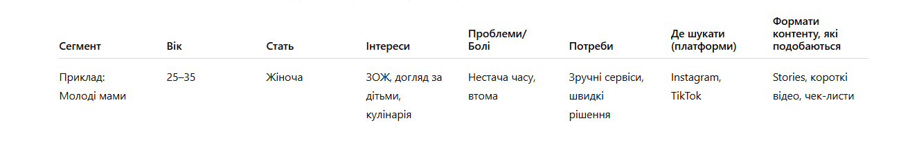 Тому спочатку потрібно скласти портрет вашого потенційного клієнта: визначити його інтереси, біль, потреби, вік, місце проживання й інші характеристики. Для цього можна використовувати інструменти аналітики, проводити опитування, збирати зворотний зв'язок тощо.