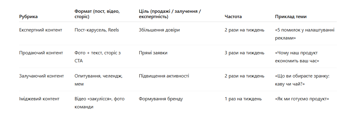 У контент-плані прописуються: