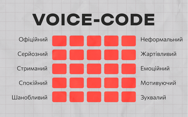 «Голос» бренду — те, як компанія спілкується з аудиторією. Наприклад, комунікація може бути строгою й офіційною або навпаки — дружньою та неформальною. Підбирати tone of voice потрібно виходячи з того, хто ваші клієнти та який образ ви хочете транслювати. Наприклад, на сторінці онлайн-школи для підлітків можна використовувати меми. А ось на сторінці юридичної фірми такий контент буде недоречним — тут треба говорити професійно та без зайвих емоцій.