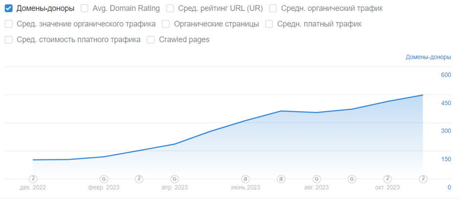 У 6,5 раза збільшилася кількість доменів-донорів, що позитивно вплинуло на розвиток профілю вебресурсу.