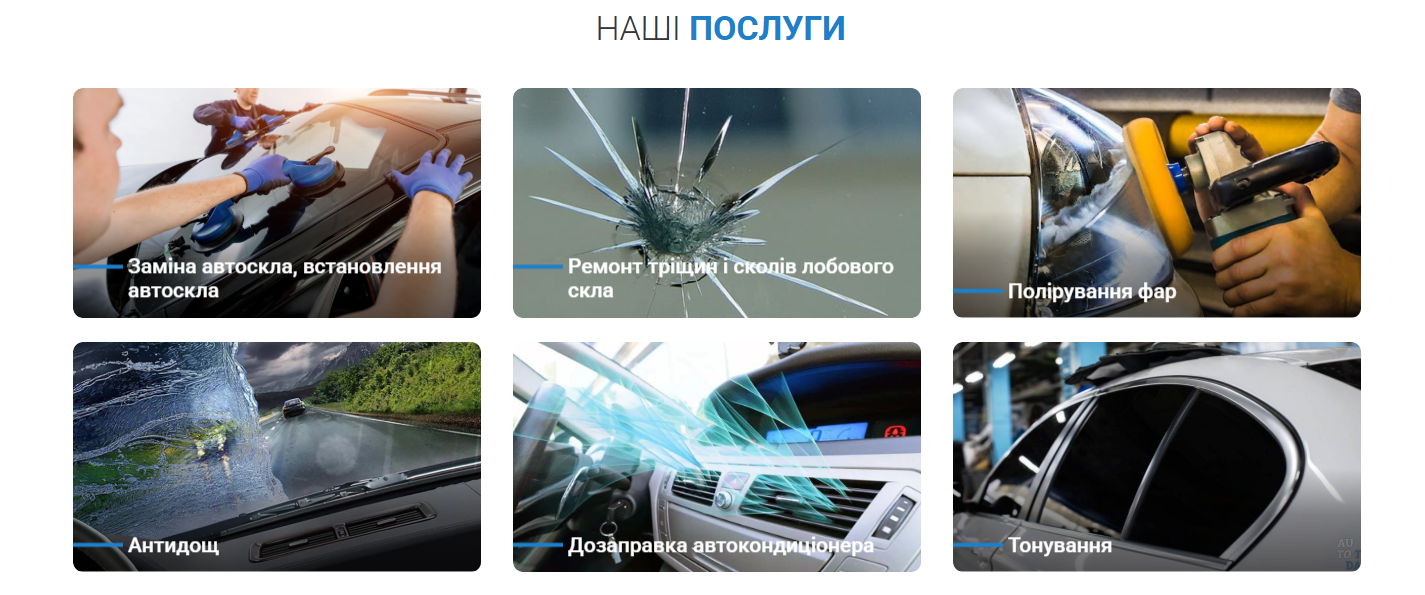 Компанія відома своїм комплексним підходом. Крім ремонту та заміни автоскла, тут пропонують послуги з нанесення гідрофобного покриття, полірування фар, тонування професійними плівками та продаж супутніх матеріалів.