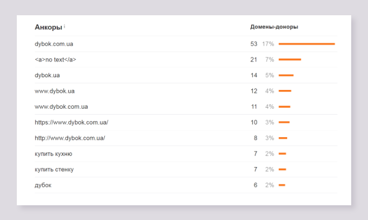 Були питання і до анкор-листа. Зокрема дуже здивувала практично повна відсутність брендових анкорів. Без них маса сайту має неприродний вигляд.