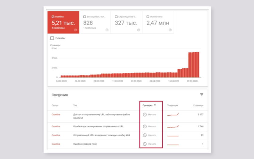 Усі роботи з технічної оптимізації проводилися на основі технічного аудиту , а також аналізу сервісу Вебмайстер Google. Зокрема, у розділі “Покриття” у Вебмайстрі Google вказані такі помилки: