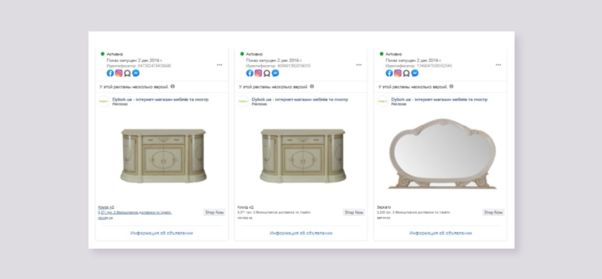 3). Реклама крутилася на одному майданчику – Facebook. Instagram був не задіяний.