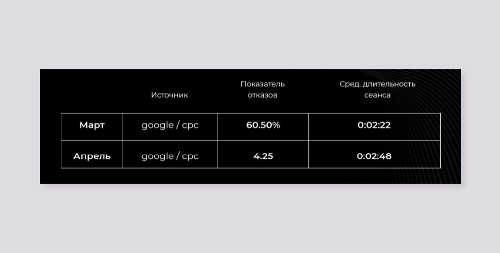 Також нам вдалося вже в перший місяць робіт досягти суттєвого покращення поведінкових факторів на сайті.
