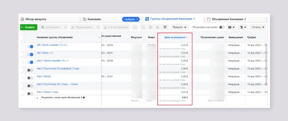 Цей рекламний канал також був налаштований і запущений до нас, але в порівнянні з рештою він був найменш пріоритетним раніше, і відповідно мав найменший бюджет. Провівши аудит рекламних кампаній, ми виявили ряд недоліків, які під час усунення могли позитивно вплинути на ефективність реклами.