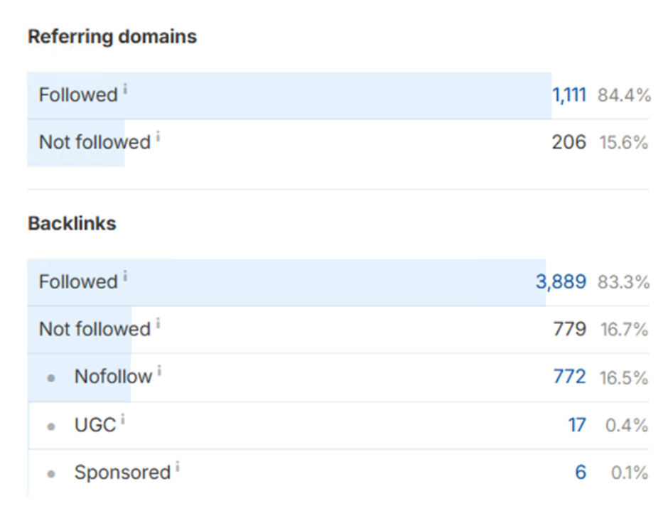 Авторитет сайту підтверджувався також покращенням посилального профілю. При цьому 84,4% посилань і 83,3% доменів були dofollow, що забезпечувало хороше перенесення ваги посилань.