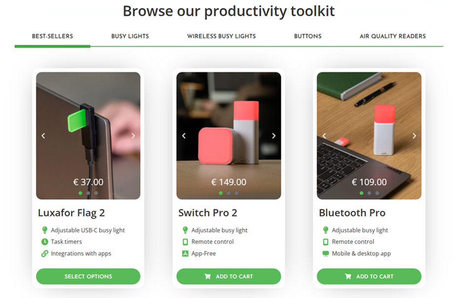 Інструменти Luxafor використовуються як для індивідуальної роботи, так і для організації робочих процесів цілих команд.