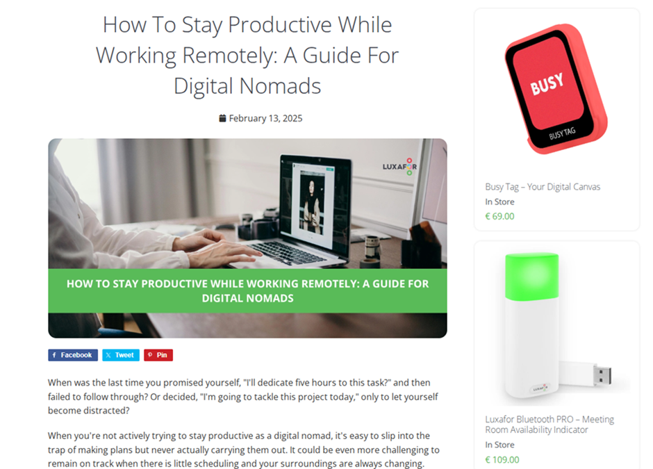 Luxafor — литовський бренд, який створює унікальні інструменти для підвищення продуктивності співробітників і працює в основному на ринку США. Компанія орієнтується на B2B-аудиторію: IT- і HR-фахівців, власників та засновників компаній.