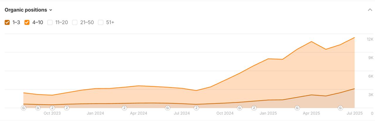 Це свідчить про ефективність технічної та контентної оптимізації, а також про зростання інтересу до ресурсу з боку релевантної аудиторії.
