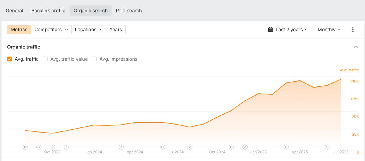 Ми вважаємо головним успіхом те, що за півтора року активної SEO-роботи проєкт отримав стабільний органічний трафік і стійку базу для подальшого розвитку.