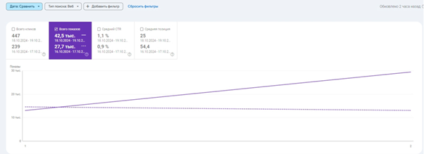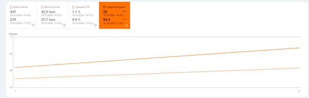 На сьогодні ми відзначаємо стабільне зростання показників: наприклад, лише за два дні середня позиція інтернет-магазину покращилася з 54,4 до 25.