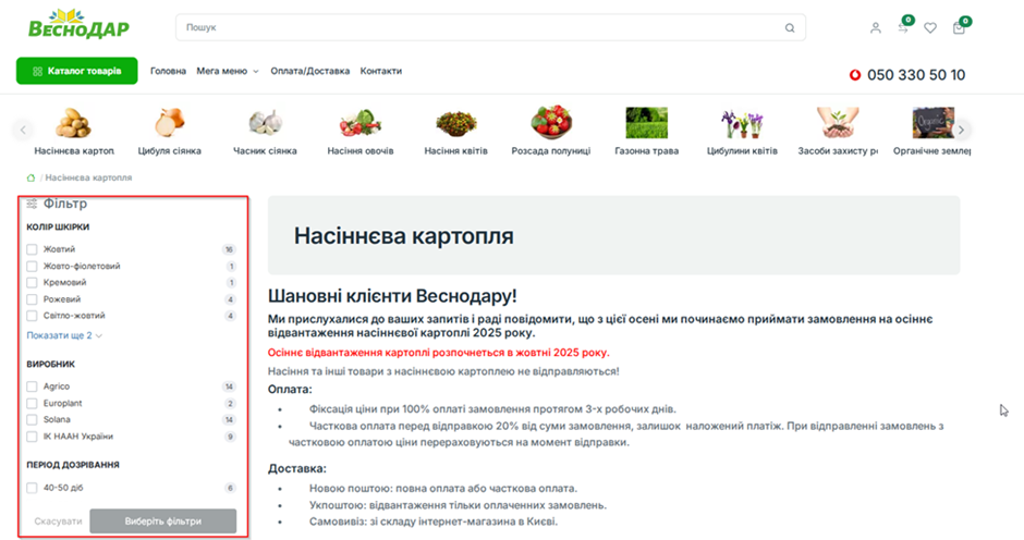 Особливу увагу приділили сторінкам фільтрів. Зазвичай такі сторінки недооцінюють, але вони давали можливість захопити додатковий пошуковий трафік. Таким чином, замість стандартного сортування товарів вони стали повноцінними сторінками, здатними залучати нових клієнтів.
