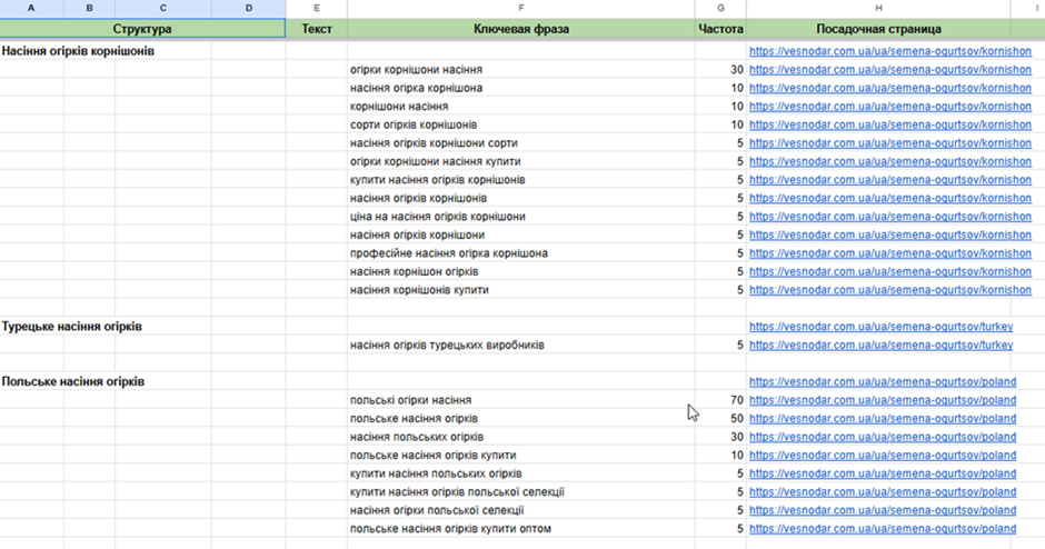 Основна частина процесу полягала у створенні семантичного ядра. Для нас було важливо визначити: